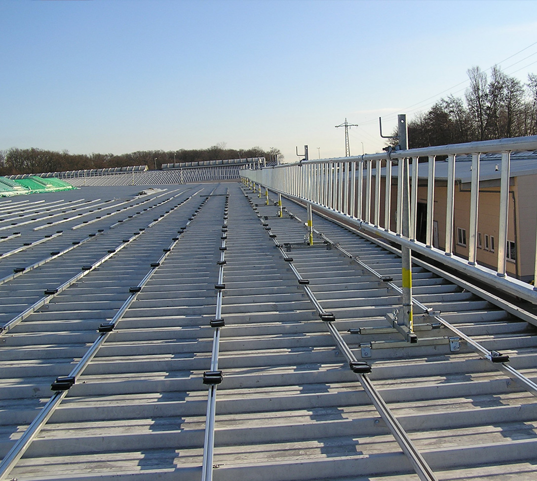 Die Blechdach-Solarkonsole ist speziell für Hallendächer konzipiert, die mit Blech gedeckt sind und auf denen Photovoltaik- oder Solaranlagen installiert werden sollen. Durch ihren geringen Platzbedarf, kann der Seitenschutzeffizient und platzsparend eingesetzt werden. Die Befestigung erfolgt unkompliziert und direkt vor Ort durch Schrauben. Dachneigungen von bis 10° sind möglich. Die Solarkonsole ist vielseitig einsetzbar auf verschiedenen Dacharten, wie Wellblech-, Trapezblech- und Kalzipdächern.