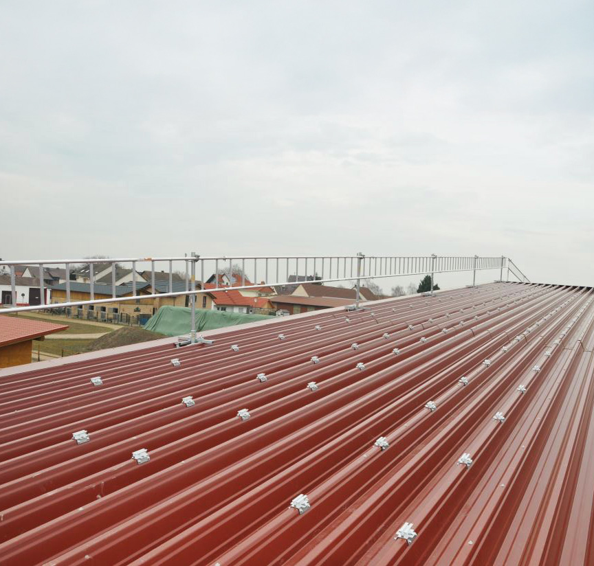 Anpassungsfähige Produkte, die sich ideal auf verschiedenen Flachdächern anbringen lassen. Wir bieten Ihnen Lösungen für unterschiedliche Attika-Höhen und Varianten von Blechdächern wie Wellblech-, Kalzip- oder Trapezblechdach.