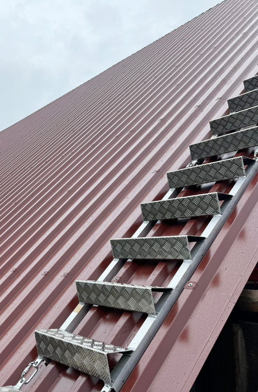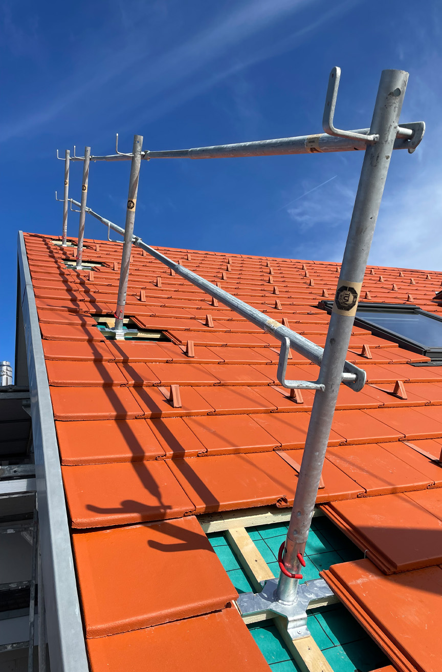 Absturzsicherungen vom Flach- bis zum Steildach, sowie variable Dach-Arbeitsgerüste und Ablagehilfen.
