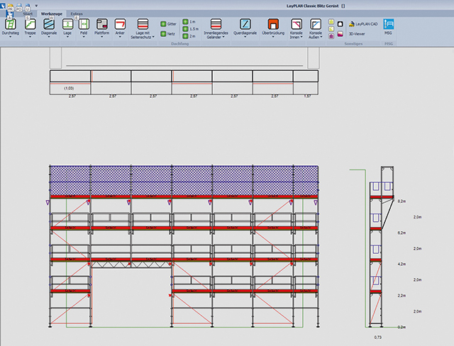 - Blitz Gerüst 0,73 m breit aus feuerverzinktem Stahl: Typenprüfung TP-16-007 für 19 Aufbauvarianten mit Standhöhen bis 100 m