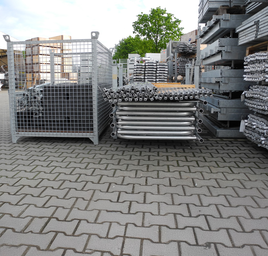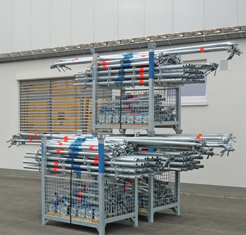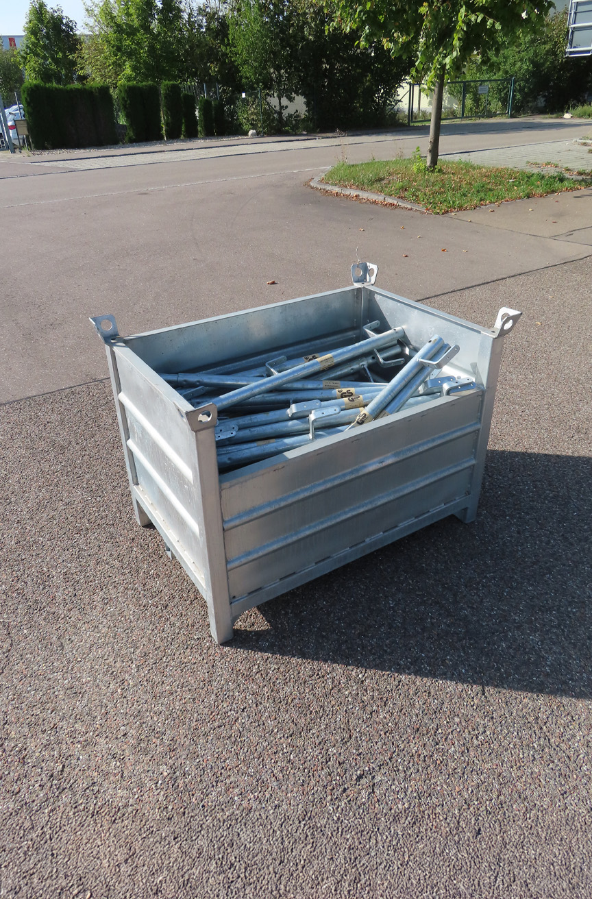 Ob für bauseitiges Lagergut oder für Layher Produkte – unsere Paletten und Lagerbehälter bieten Ihnen sicheres und praktisches Lagern und Transportieren mit System.