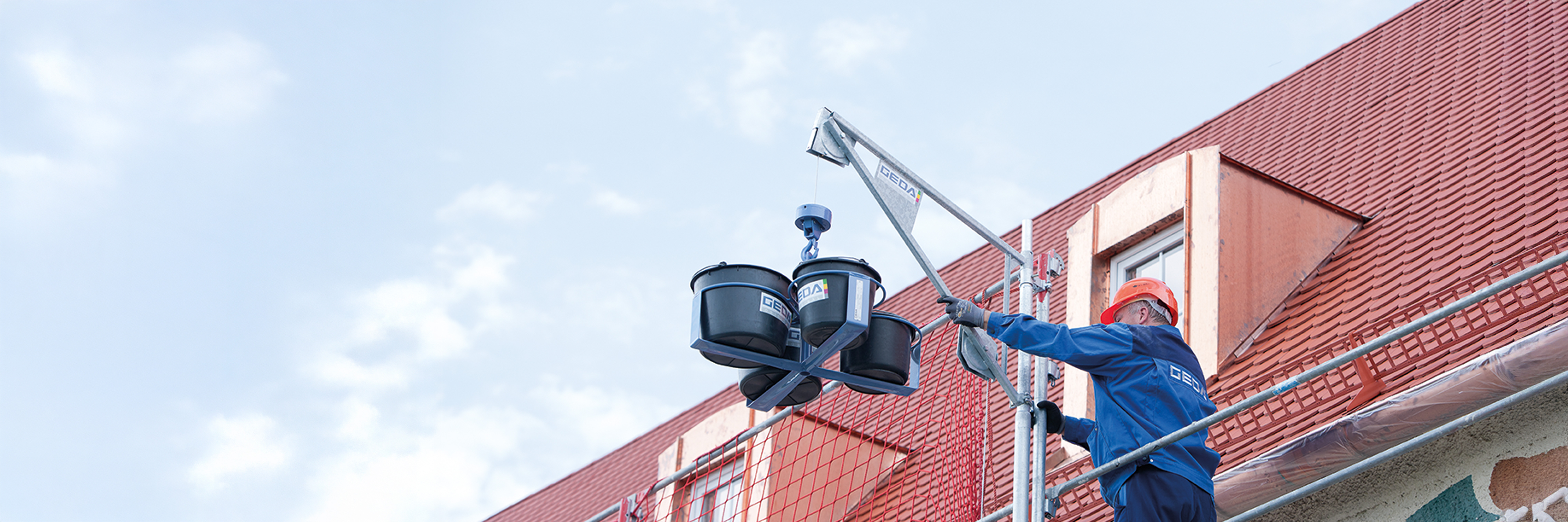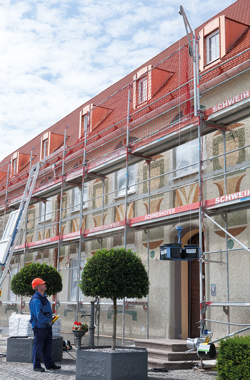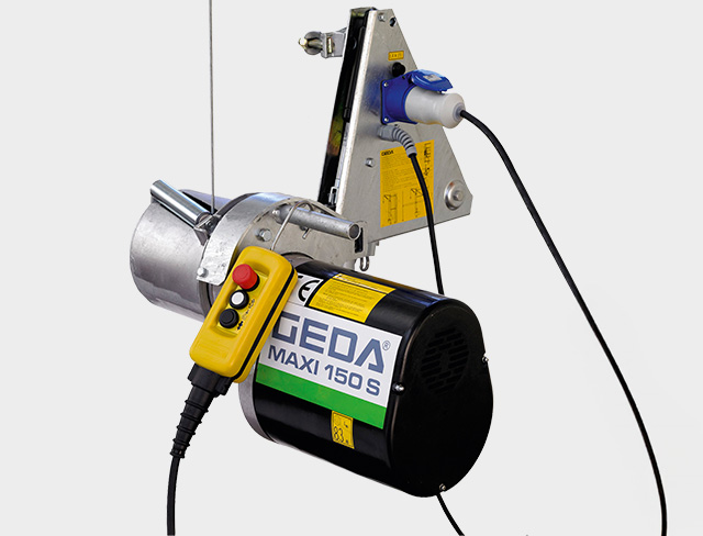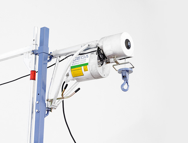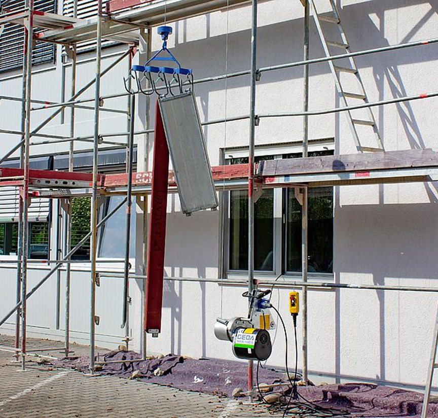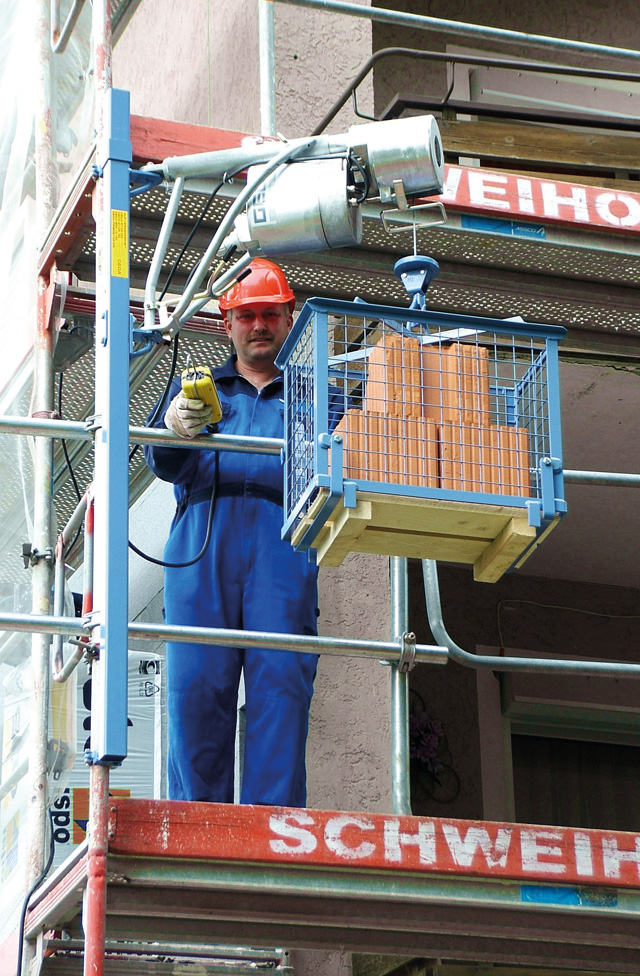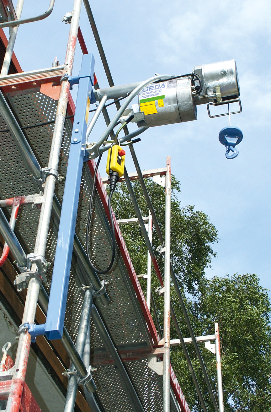 Die ungeführten Seilaufzüge GEDA Mini/Maxi werden unten am Gerüst befestigt und sind dank unkompliziertem Aufbau und der Möglichkeit des raschen Umsetzens die idealen Einsatzhelfer.