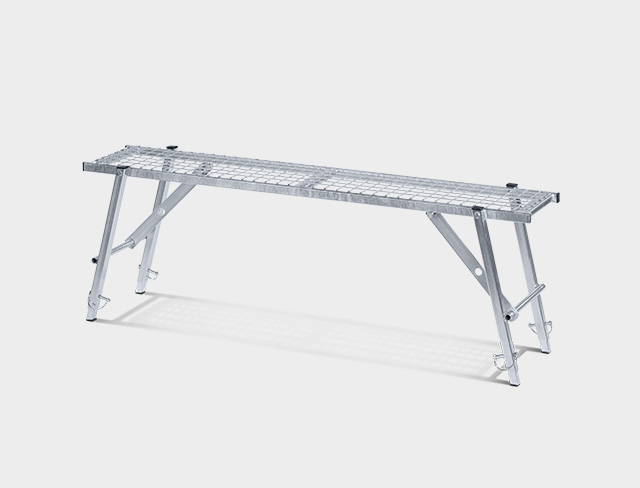 Stabile und leichte Arbeitsplattform, die dank konisch verlaufenden Füßen einen sehr guten Stand bietet.