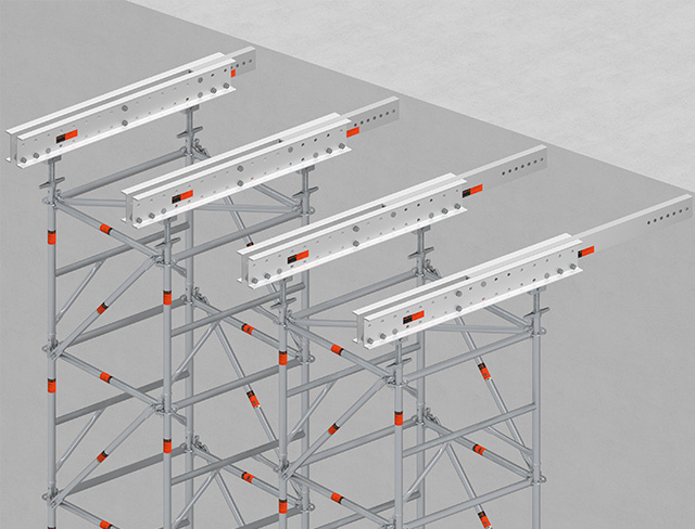 Nur ein Stiel für Stand- und Hängegerüste – erspart die zeitaufwändige Montage separater Rohrverbinder und vermeidet doppelte Lagerhaltung.