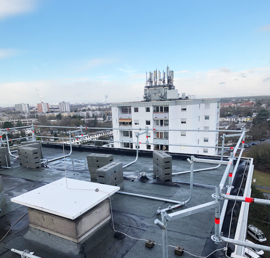 Sicherheit mit System, auch auf dem Flachdach, mit dem bewährten AllroundGerüst. Für Dacharbeiten an Neubauten, Sanierungen, Reparaturen und sonstige Arbeiten, wie z.B. Dachbegrünungen geeignet. Auch Arbeitsvorgänge an der Attika sind möglich.