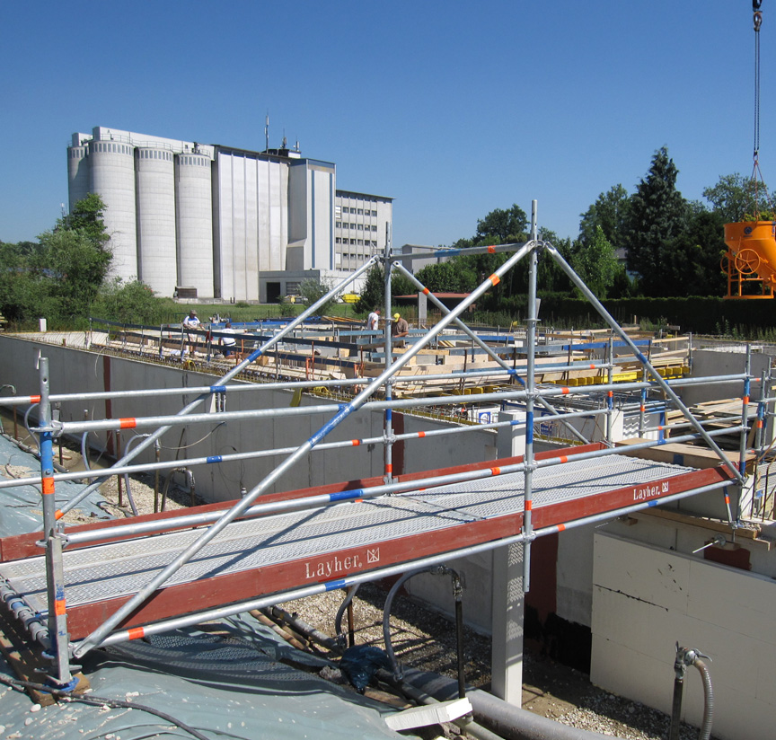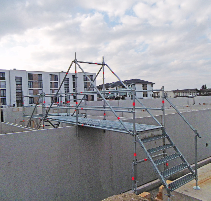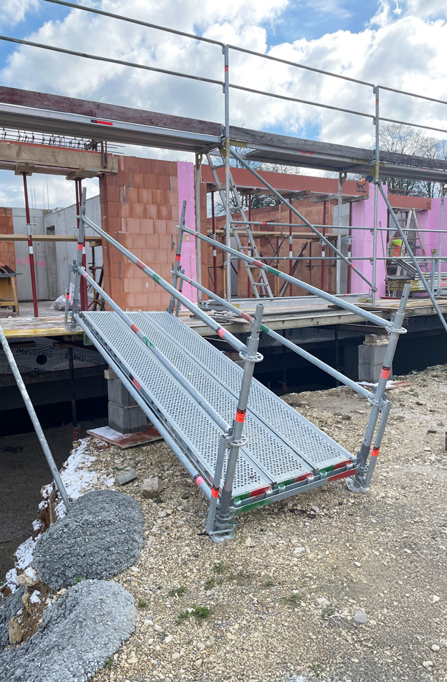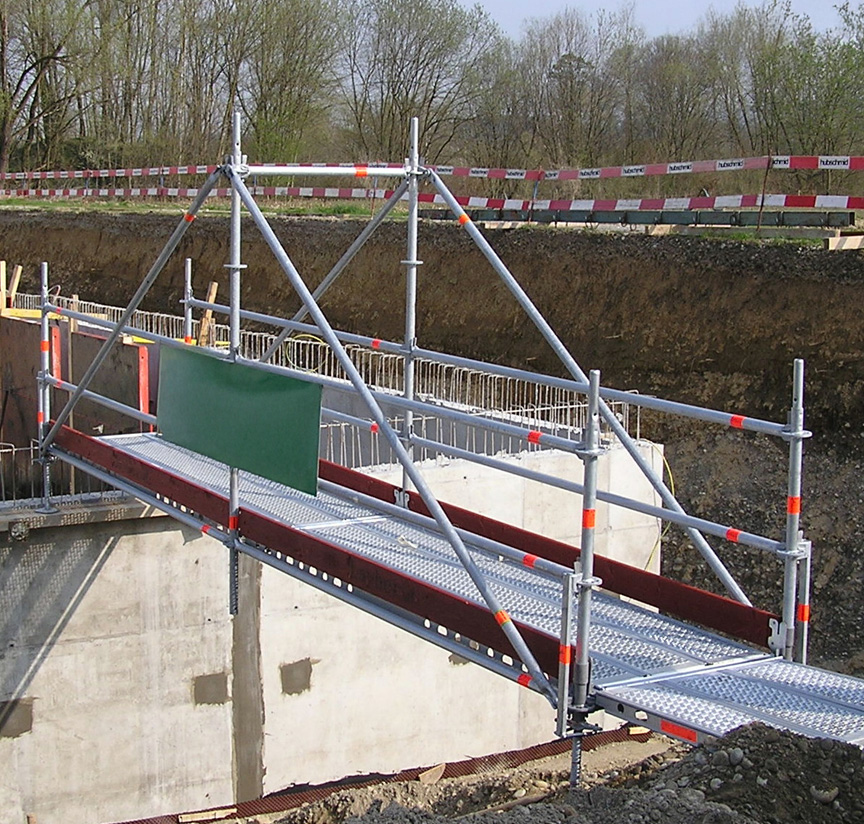 Ein schneller und sicherer Zugang zur Baustelle – eine weitere Anwendung aus dem „Baukasten“ des Layher AllroundGerüstsystems.