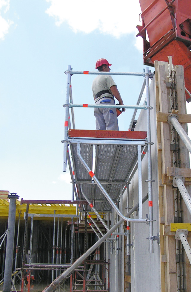 Mit dem Allround Hohlwandkonsolenadapter wird aus dem bewährten AllroundGerüst eine Einhängekonsole für Halbfertigteilwände.