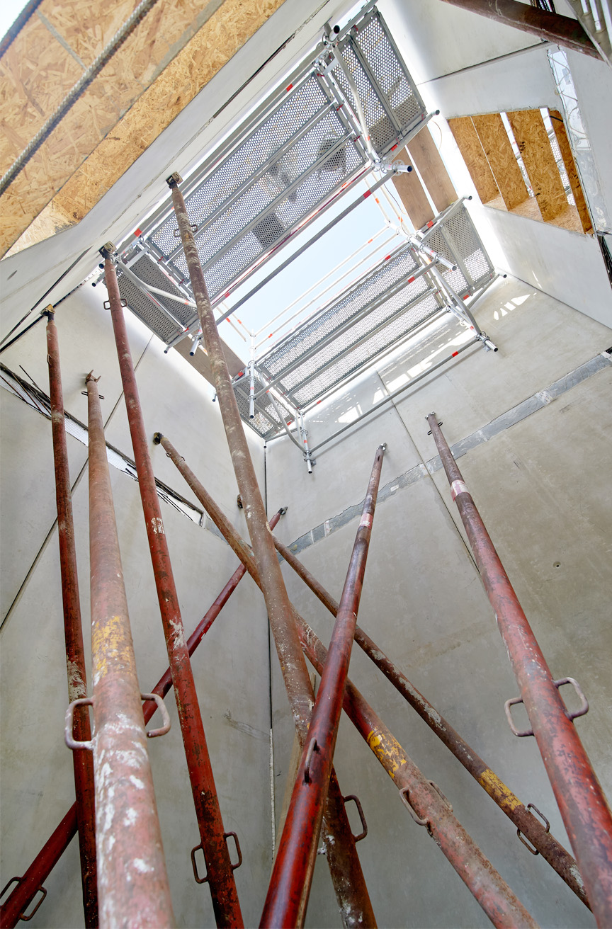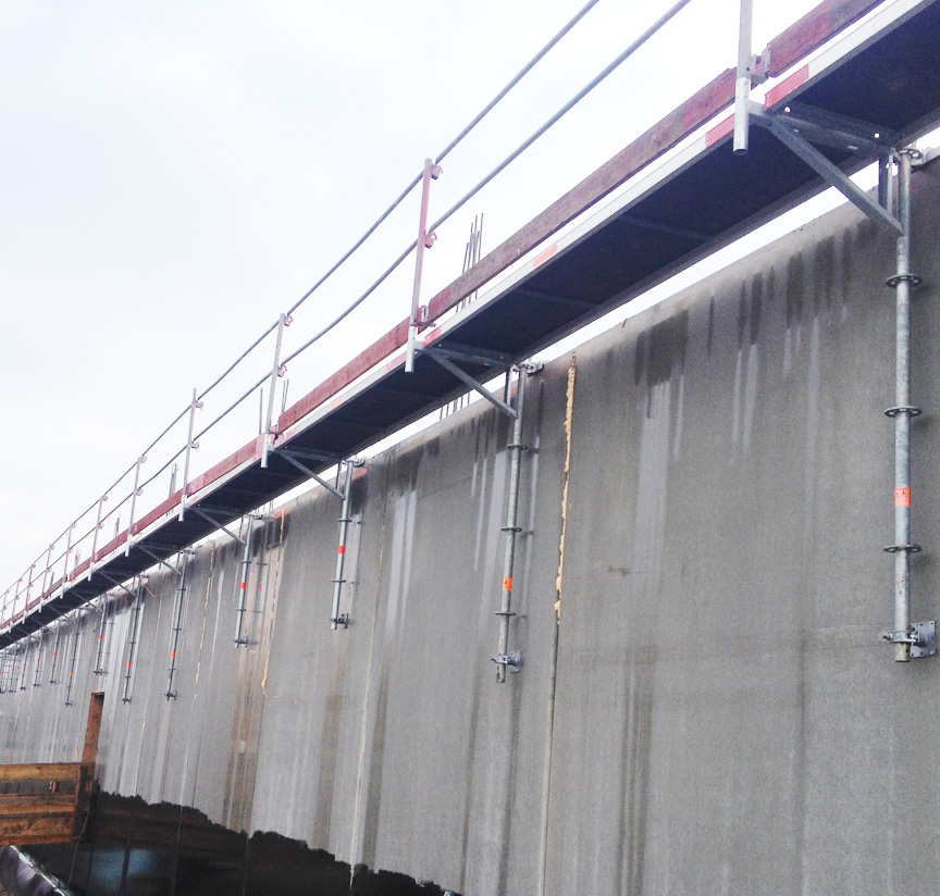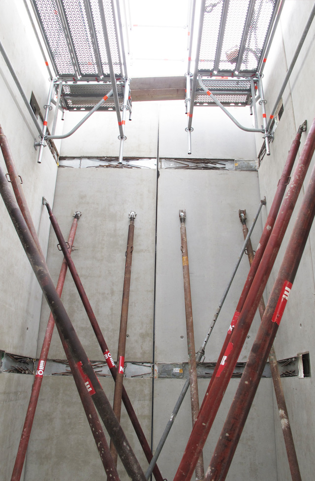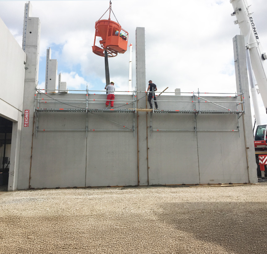 Die notwendigen Betonwand-Stützungen erlauben in der Regel keine Stellung von Bockgerüsten.