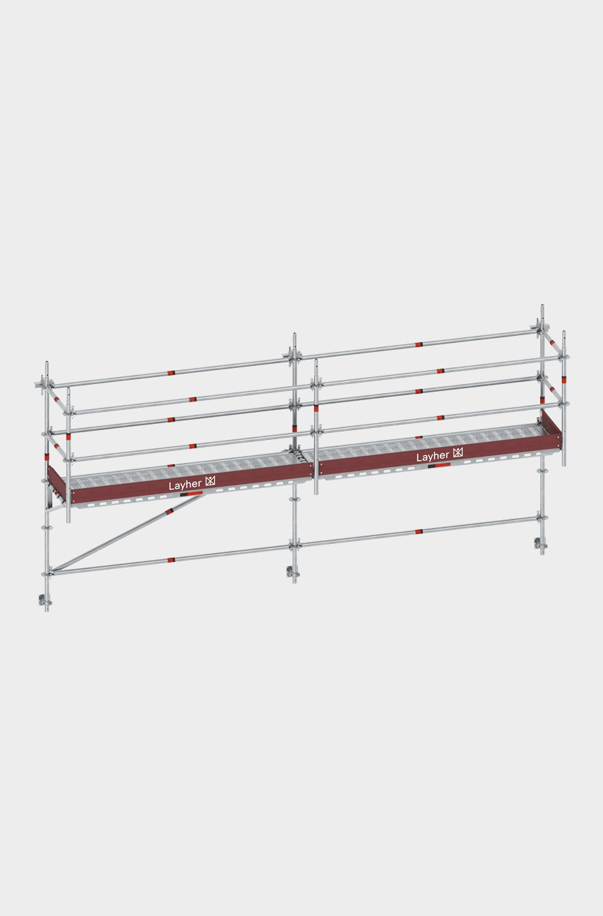 - Aufhängung als Einzelkonsole (mit bauseitigen Gerüstbohlen und Seitenschutzbretter) oder komplette Batterie möglich